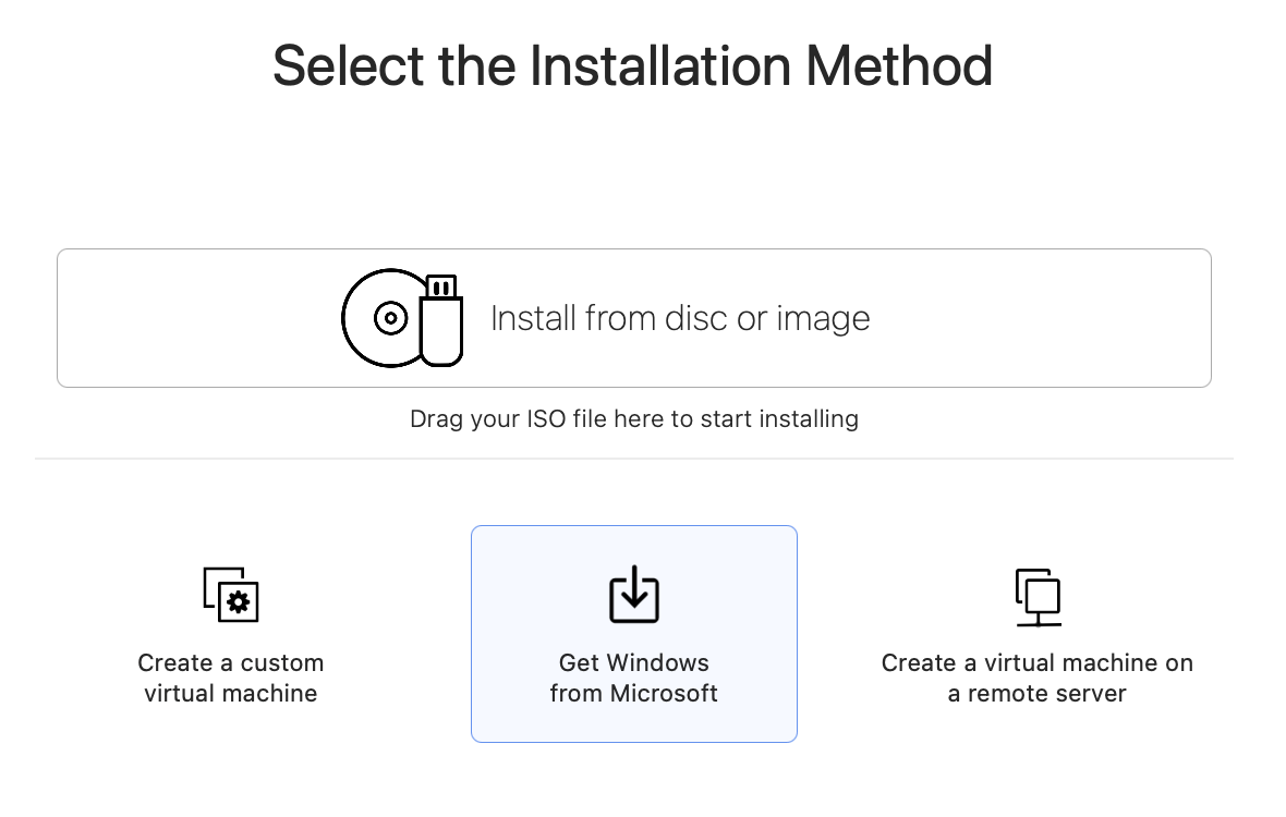 我的macOS用的ParallelsDesktop,镜像不能用可能是macOS是ARM架构的原因,截图里下载的可能是Intel的Windows。 你找个ARM的Windows试试呢 https://www.microsoft.com/zh-cn/software-download/windows11arm64