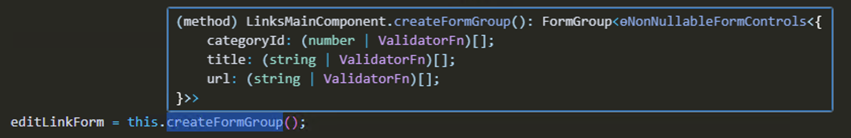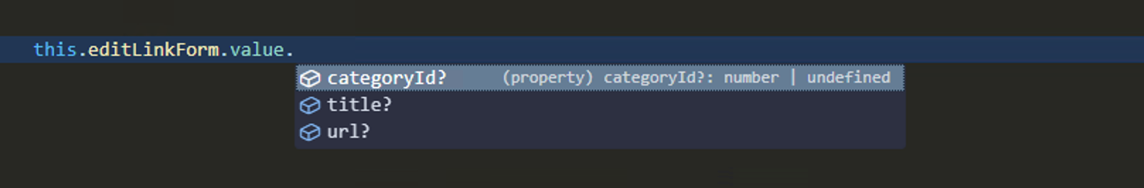 下面使用 reactive forms 的 代码,在 vscode 编辑器中输入 this.editLinkForm.value.