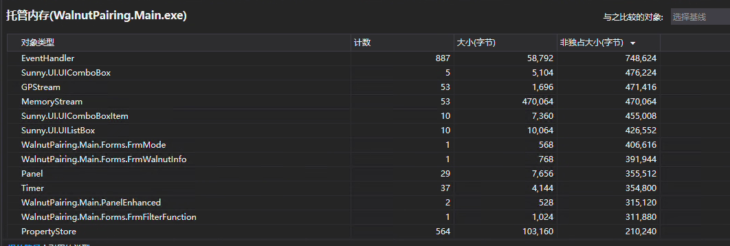 感谢大神回复 我用vs诊断工具显示了内存使用率,但是看不懂对象类型都代表着什么,我以为会给我显示具体哪个变量所占内存变高 而且我的进程内存已经3GB了 截图中占内存最大的才748624字节还不到1兆