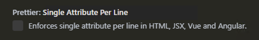 需要在 .prettierrc 配置文件中给 printWidth 设置一个更大的值,每个 attribute 是否单独放在一行是由 printWidth 决定的,超过 printWidth,singleAttributePerLine 的设置就不起作用