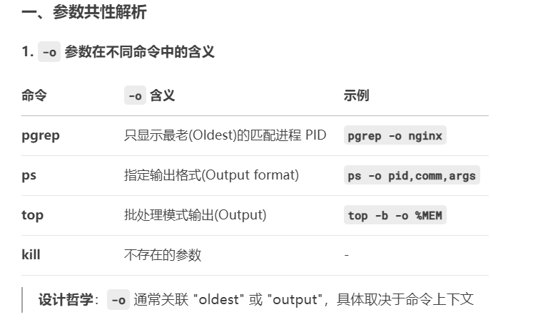 -o 输出/最老进程 一致性:相似功能相似参数