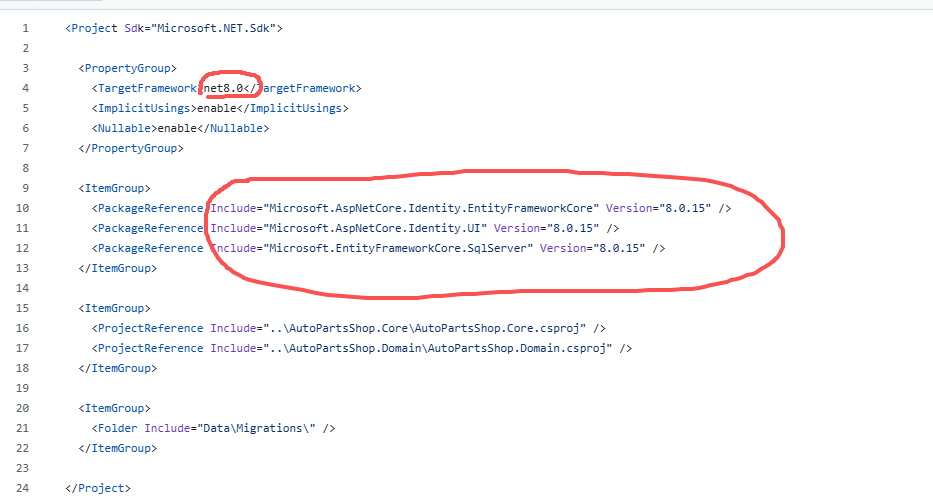 不兼容的包引用:AutoPartsShop.Infrastructure 引用了:
