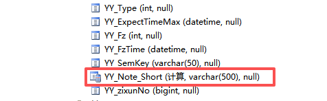 2:但是后面就发现原有的表列中多了一列计算列,数据库实际存在的有一个列叫YY_Note,但是不知道这个YY_Note_Short是怎么来的!