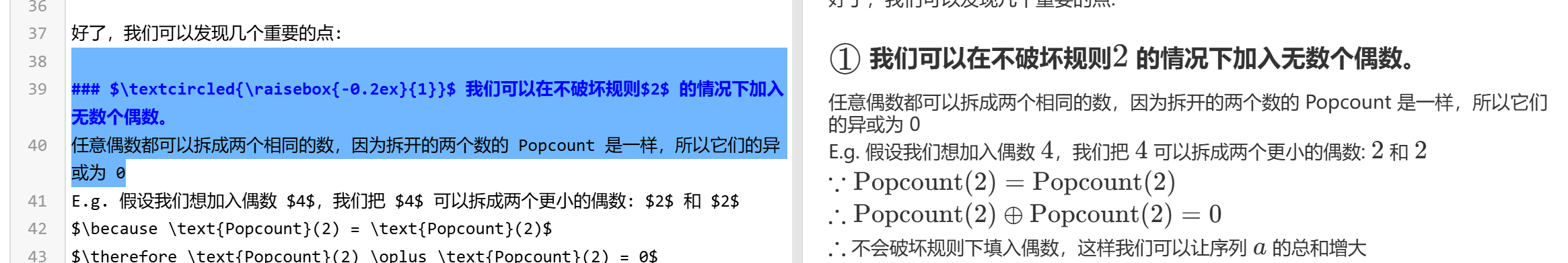 其实,在标题里面想使用公式,其实是一个我认为非常奇怪的事情,实际上,我目前没见过把公式写到标题里面。对于圆圈序号,只要你的数字不是特别大,emoji 完全够用,比如我的 ① ② ③ ,这个系统都会支持的。对于规则 2 的数字强调,你可以使用加粗、斜体等特殊格式来描述。