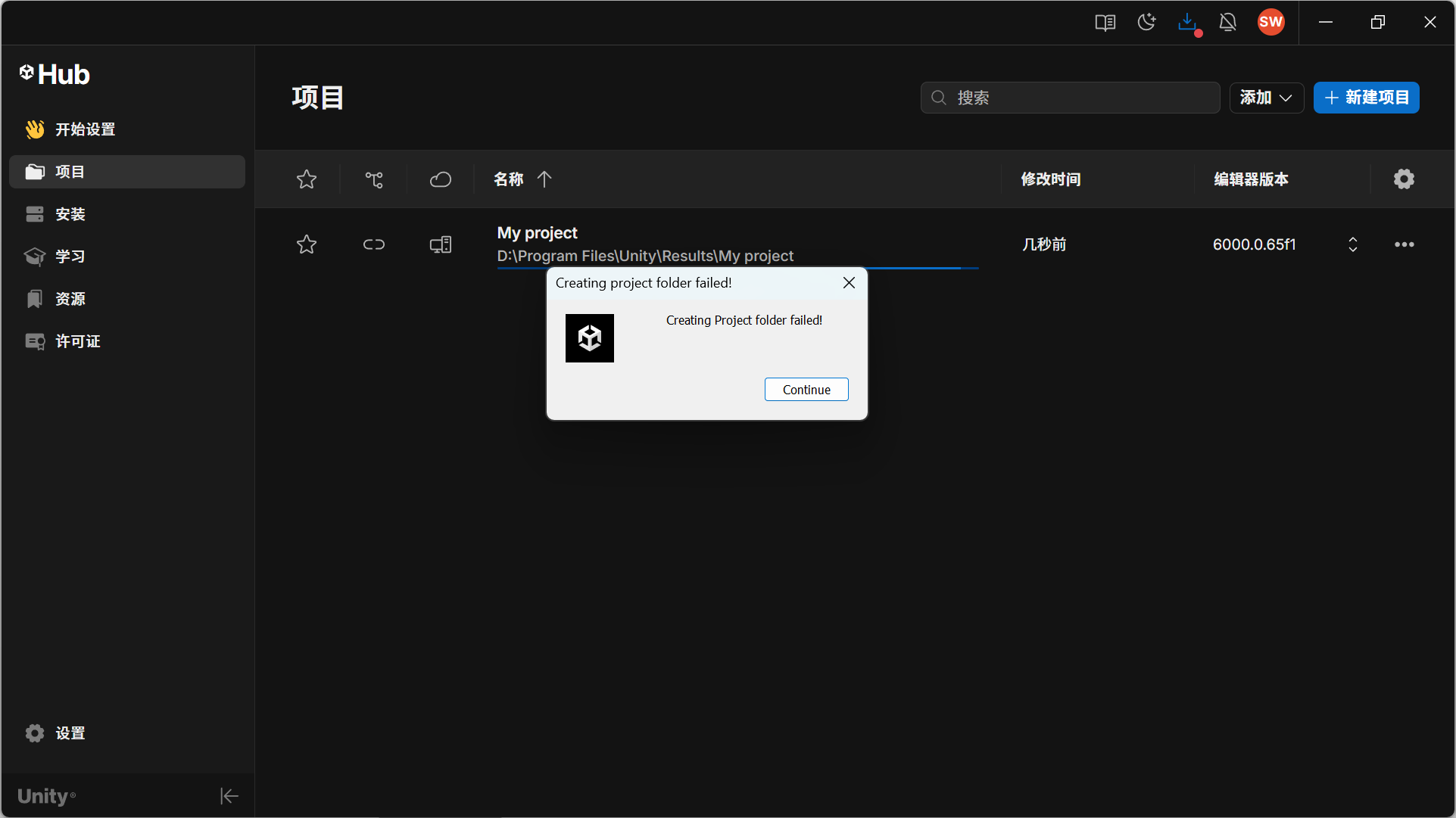 去官网https://unity.com/releases/editor/whats-new/6000.0.65f1#installers手动安装下来相关版本,创建项目时又会显示创建失败
