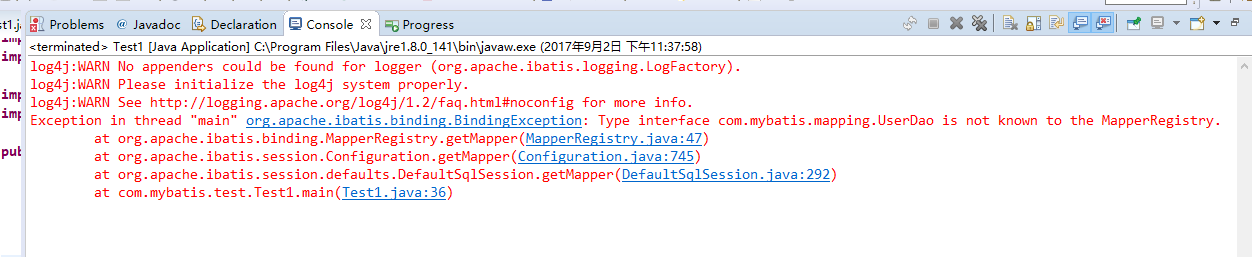 我现在用SqlSession.selectOne()可以查询数据库数据,运行sqlsession.getMapper()就会报错Exception in thread "main" org.apache.ibatis.binding.BindingException: Type interface com.mybatis.mapping.UserDao is not known to the MapperRegistry